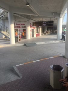 喫煙所方向へそのまま直進すると国際線ターミナルのタクシー乗り場に出ますので、そこをさらに直進すると今度はバスの待機所がありますが、そのまま直進します。そして突き当りを右折するとここへ出ます。ここまで所要時間13分程です。