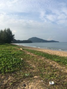 ナイヤンビーチは国立の記念公園に指定されていて、入場するのに200バーツ必要なはずなんですが、朝8時頃のせいか無人でした。ビーチ入口です。