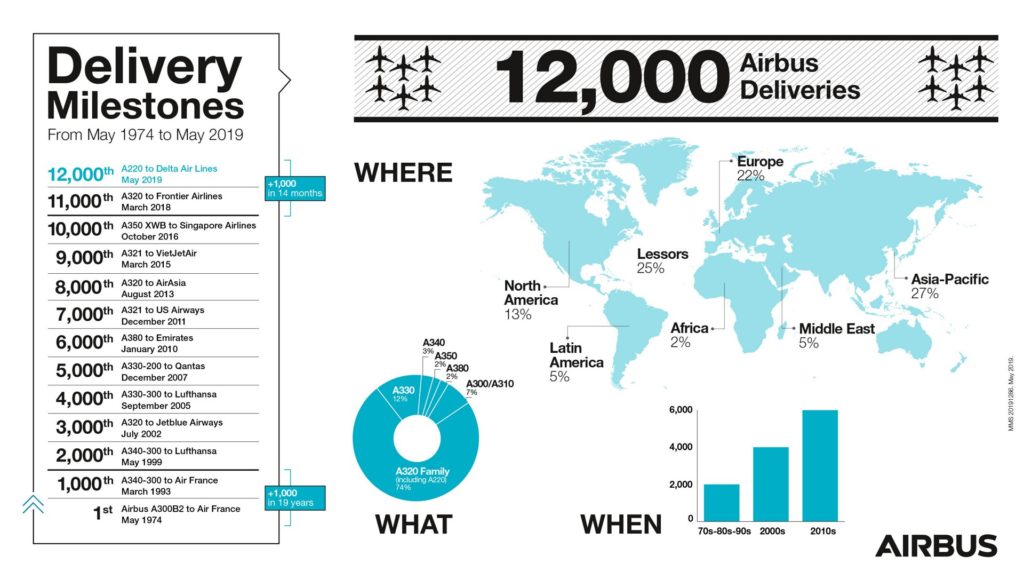 エアバスは、通算12,000機目となる機体をデルタ航空へ2019年5月20日に納入したことを発表しました。