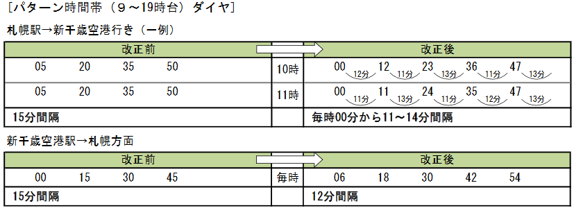 そのほか増発する「エアポート」のうち4本を速達タイプの「特別快速」とし、札幌発では朝通勤時間帯に新千歳空港行きを2本設定し、空港アクセスに特化することで前後の「エアポー ト」の混雑を緩和します。空港発では夜間帯に札幌行きを2本設定し、空港アクセスと沿線の利用との棲み分けを図るとしています。※特別快速:停車駅は札幌空港間で新札幌・南千歳のみ