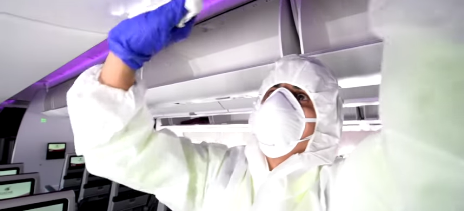 カタール航空、新型コロナウイルス対策の機内清掃の様子を公開 動画公開で安全性をアピール
