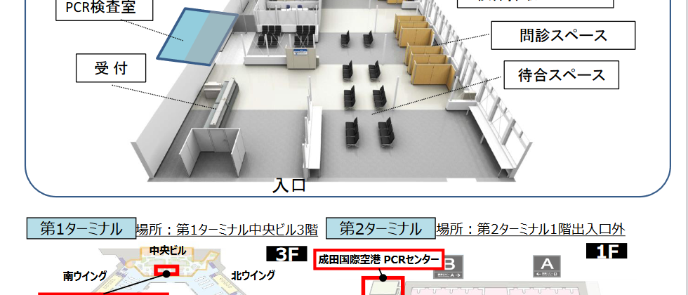 成田空港、第1・第2ターミナルの計2箇所にPCRセンターの開設を発表 最短2時間で受付から陰性証明書発行