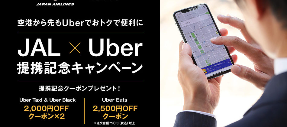 JAL、Uber/ウーバーと戦略的パートナーシップ契約締結 JALアプリで配車とフードデリバリーの手配が可能に