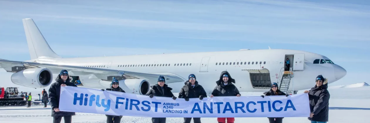 ハイフライ航空、史上初めてA340型機が南極大陸に着陸した事を発表 氷の滑走路に着陸
