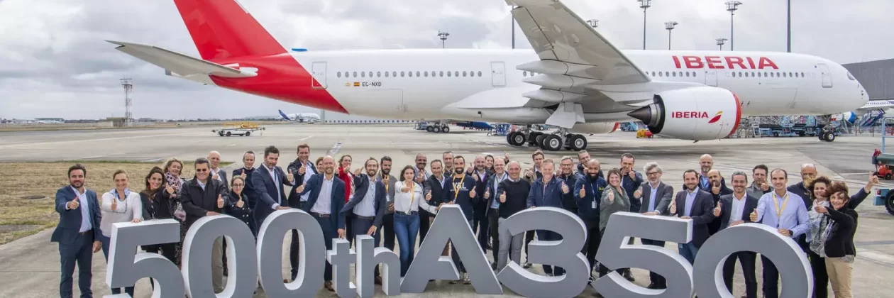 エアバス、初号機納入から8年で500機目のA350をイベリア航空に納入
