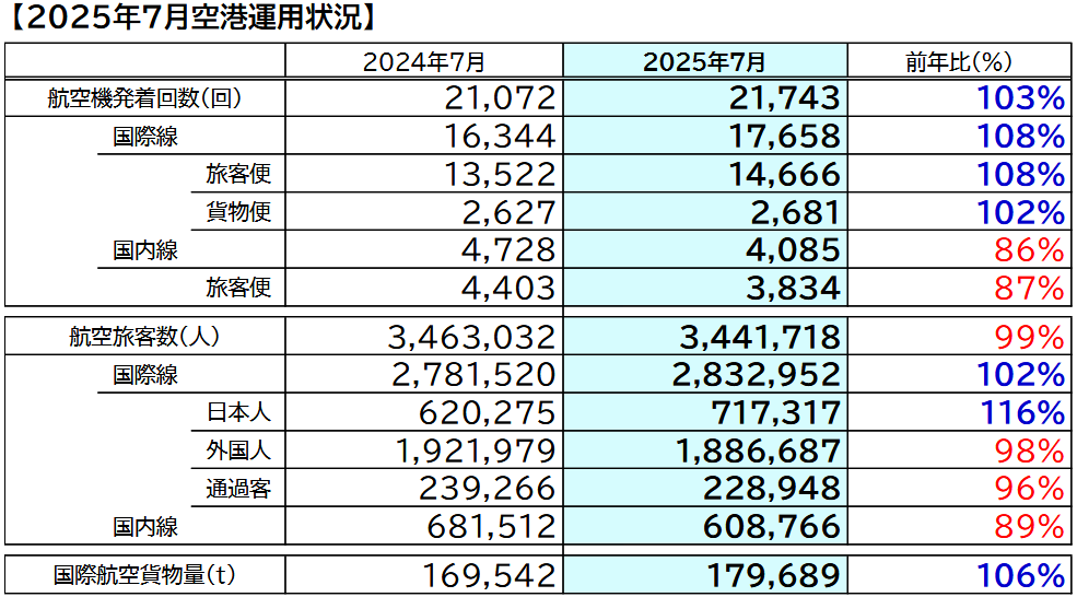 成田空港は、2025年7月の空港運用状況を発表しました。