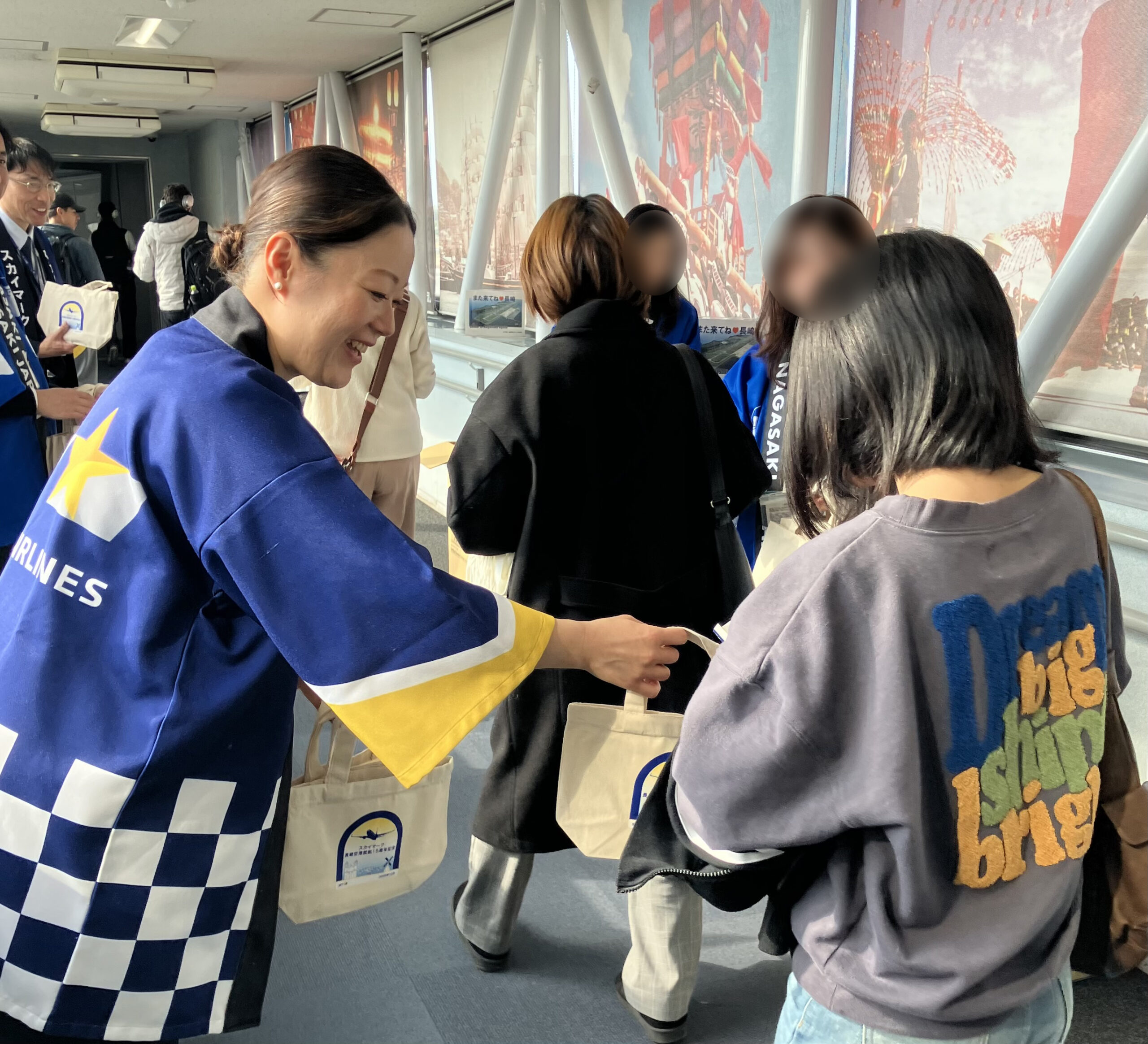 これを記念し、同日の長崎~神戸便の搭乗者に長崎空港就航15周年を記念したランチバックとステッカー、有限会社和泉屋のカステラ、長崎空港開港50周年の記念品を進呈しています。