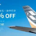 今回のセールでは、成田発着路線を対象に、台北、台中、アメリカ5空港(ロサンゼルス・サンフランシスコ・シアトル・オンタリオ・フェニックス)への航空運賃がプロモーションコードの入力で12%OFFとなります。